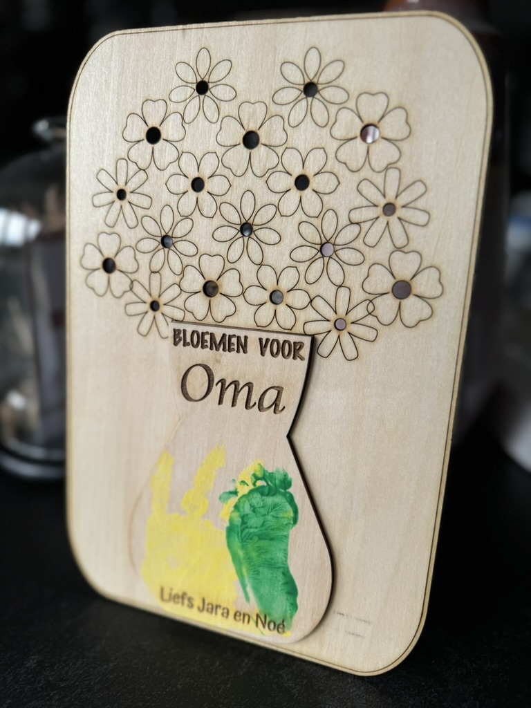 Pluk de bloemetjes en steek deze in het plankje. Zo creëer je je eigen boeket voor mama of oma.