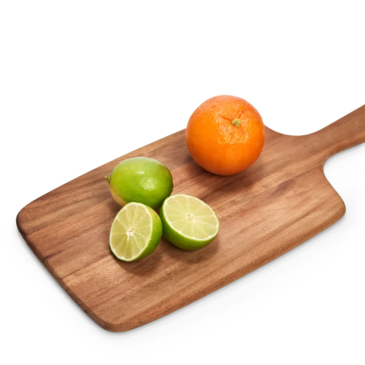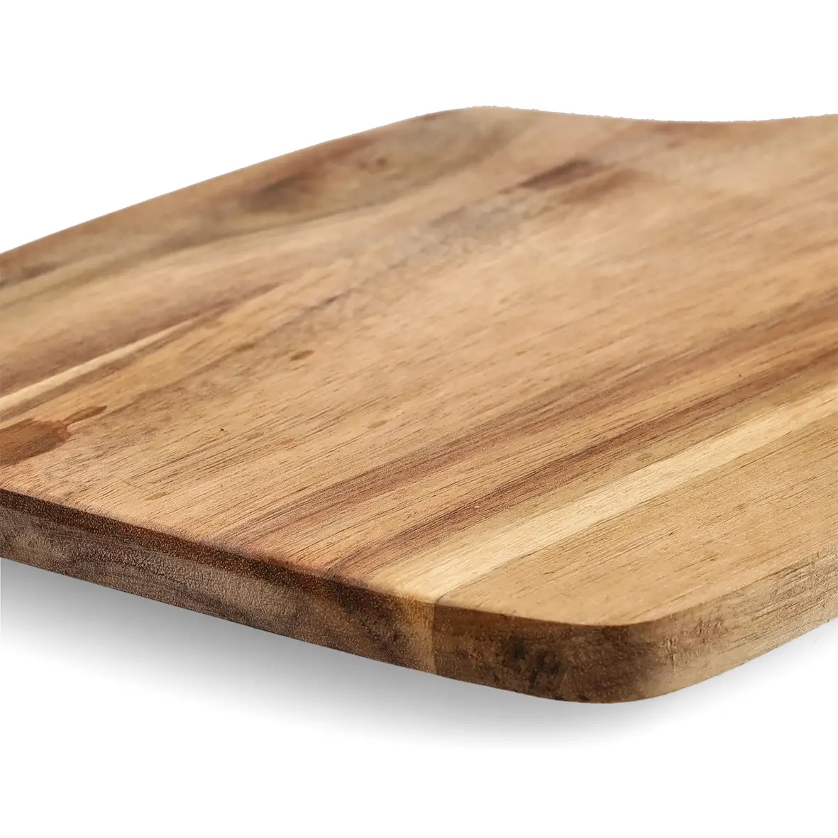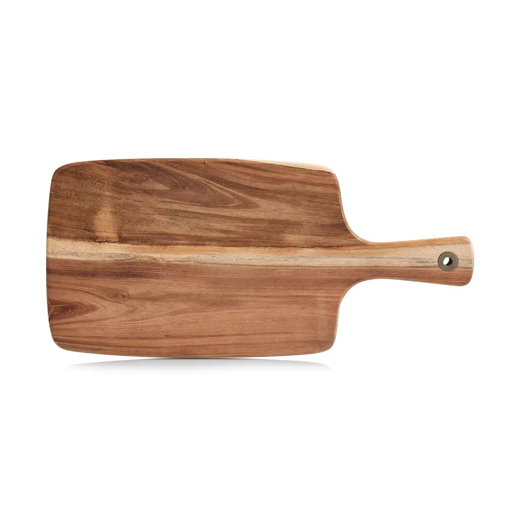 Deze praktische snijplank met handvat is gemaakt van hoogwaardig acaciahout en overtuigt niet alleen door zijn natuurlijke en hoogwaardige uitstraling, maar ook door zijn functionaliteit. Het handvat vergemakkelijkt het gebruik van de snijplank en dankzij het gat in het handvat kunt u de plank ook eenvoudig aan de muur ophangen. De keukenhulp is niet alleen mesvriendelijk, maar ook smaak- en geurloos.